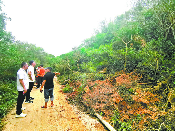 受今年第9号台风“卢碧”带来的强降水影响,莆田市秀屿区多处高陡边坡发生不同程度的滑坡。近日,秀屿区自然资源局组织有关技术人员前往现场调查。图为该局工作人员在一滑坡点指导灾后重建工作。