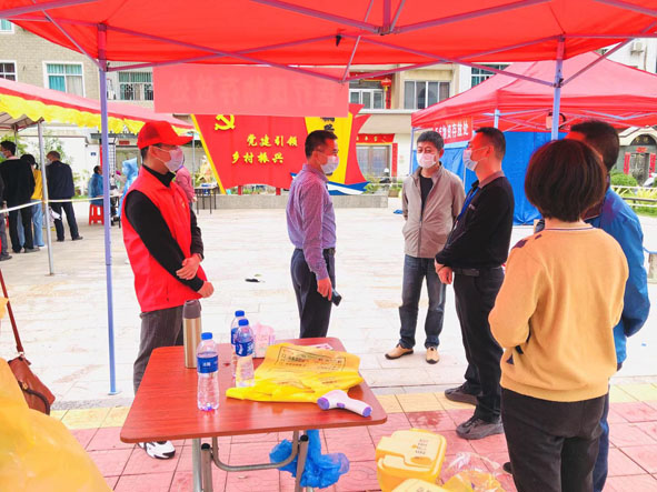 3月21日,东山县自然资源局局长阮俊华对挂钩的铜兴村核酸检测点“铜兴党建园”的疫情防控工作进行部署,要求从严从紧开展疫情防控工作,严格落实“线下统筹+线上公告”双线跟进、“领导带队+专岗值班”双责联动、“局内防疫+驻村联防”双重部署,定人定岗,履职尽责。