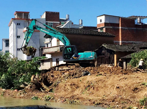 连城县姑田镇依法拆除河岸违建300余平方米: