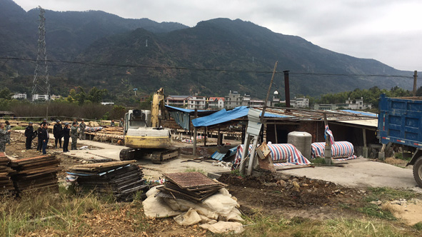 永泰县自然资源和规划局执法监察大队拆除违建现场: