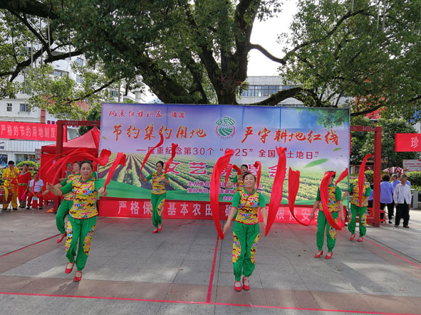 6月23日,清流县自然资源局组织开展文艺踩街、专场演出和宣传咨询活动,向过往群众进行新《土地管理法》《城乡规划法》以及永久基本农田保护、节约集约利用土地资源、保护生态环境等方面知识的宣传。 ■ 高清泉