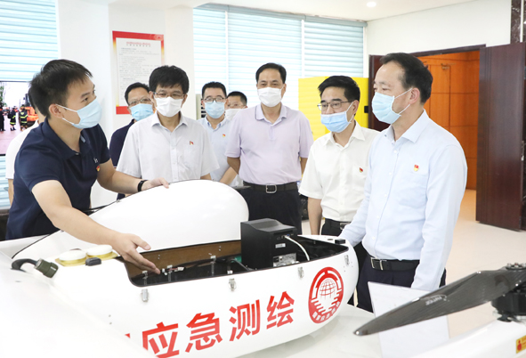 本报讯 8月13日,副省长李德金到省测绘院华林基地调研自然资源执法监管工作,察看无人机、“天地图.福建”平台、省卫星导航定位服务系统等应用情况,并听取省自然资源厅关于“天上看、地上查、网上管”动态监管等工作情况汇报,研究部署下一步工作。省自然资源厅党组书记林文斌、厅长叶敏等领导参加调研。