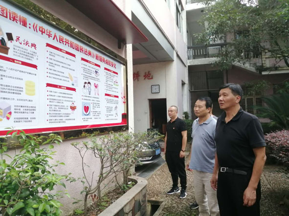 图为近日,南平市自然资源局党组成员、副局长张秀福(前)到浦城县自然资源局检查、指导《民法典》普法工作。