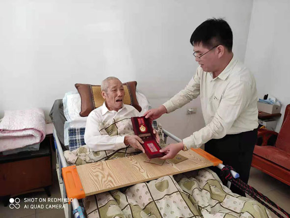 近日,省197地质大队党委书记戴定贤一行前往温陵队部看望慰问参加过抗美援朝战争的退休老同志朱明顺,送去党和组织的深切关怀。