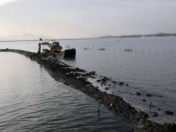 12月18日,诏安县自然资源局组织执法人员,对此前开展岸线巡查中发现的深桥镇岸屿村头山岛北侧海域非法围海堤岸实施拆除。
