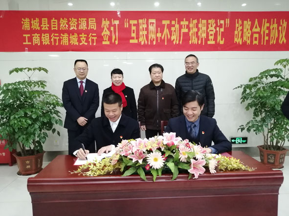 2020年12月25日,浦城县自然资源局与中国工商银行浦城支行签订“互联网+不动产抵押登记”战略合作协议。今后,企业、群众在该支行办理抵押贷款时,可以同步申请办理不动产抵押登记,无需再跑不动产登记中心窗口,实现只进银行“一扇门”、抵押登记“零跑腿”。 图为签约现场。