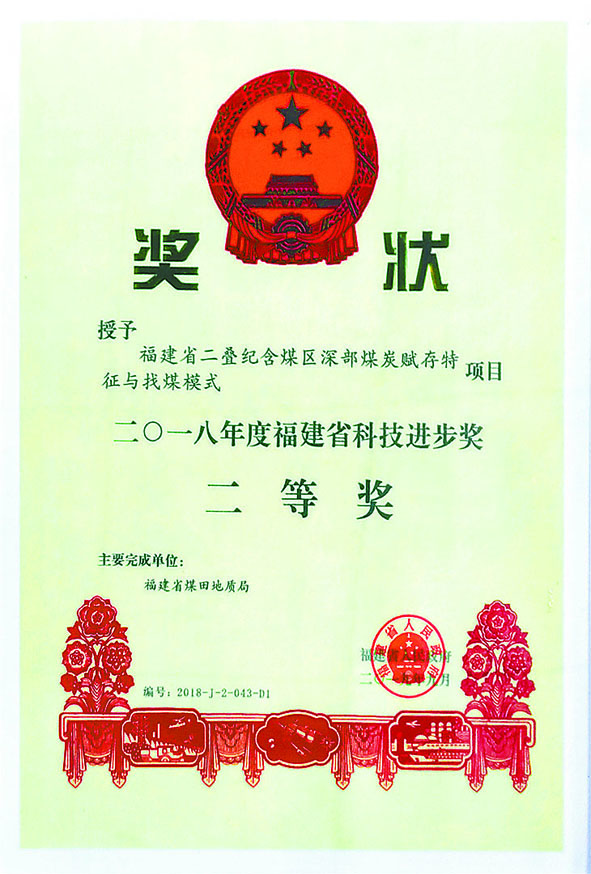 1.科技进步奖取得新进展。《福建省二叠系含煤区深部煤炭资源赋存特征与找煤模式》获2018年度福建省科技进步二等奖,是省煤田地质局进入新世纪以来第一次获得省部级科技奖。