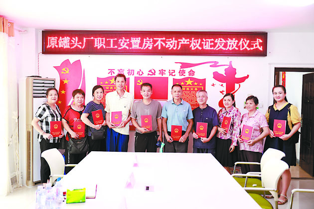 8月12日,顺昌县不动产登记中心在该县金溪社区举行原顺昌县罐头厂职工安置房发证仪式。由于历史遗留问题,原顺昌县罐头厂职工安置房项目一直无法通过竣工验收,导致产权证“难产”。经该县政府积极协调,该项目顺利通过竣工验收,该中心安排工作人员上门为高龄业主办理不动产权证。图为原顺昌县罐头厂职工安置房不动产权证发放仪式。
