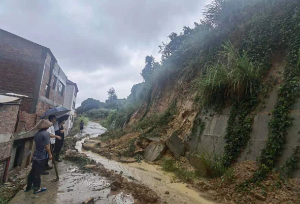 台风“卢碧”期间,省第四地质大队成立8支地质灾害应急小组,协同宁德市自然资源局第一时间赶赴现场,开展地灾隐患排查和应急处置,共完成蕉城、福安、福鼎等地95处地灾(隐患)点的排查工作。 图为应急技术人员在福安市下白石镇楼坪村田坪自然村地灾点调查。