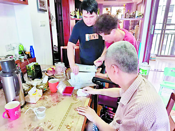 今年初以来,永泰县不动产登记和交易中心扎实推进“我为群众办实事”活动,为行动不便的办事群众提供上门服务,进一步提升群众获得感和幸福感。 图为10月12日,该中心工作人员前往樟城镇八仙路日出东方小区,上门为行动不便的詹先生提供不动产转移登记服务。