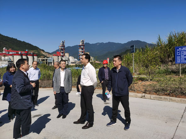图为叶敏一行在福建金牛水泥有限公司水泥用灰岩矿调研。