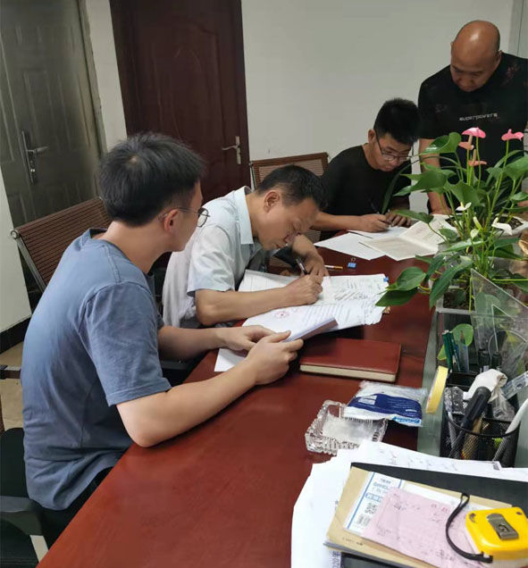 近日,寿宁县不动产登记中心工作人员来到犀溪镇际武工业集中区,为强宇石化机械有限公司、华昊机械有限公司提供上门服务,指导办理房屋所有权首次登记。 图为该中心工作人员正在指导企业经办人员填写办证材料表。
