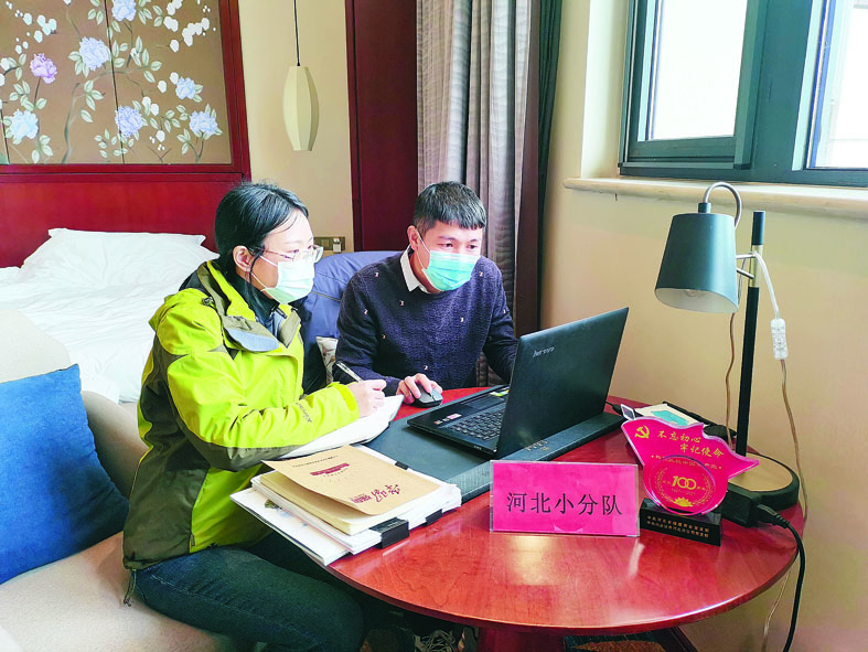 图为陈英(左)与同事在河北抗疫办公现场。