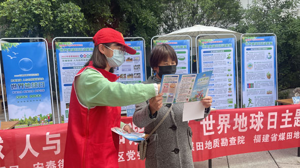 省煤田地质局组织志愿者到福州市乌山社区开展主题宣传活动,向社区居民普及世界地球日相关知识,倡导讲文明、重环保,做好垃圾分类、做到低碳出行。
