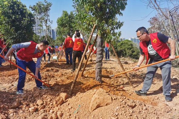 310日,漳州市自然资源局党员志愿者到龙文区景山公园义务植树。