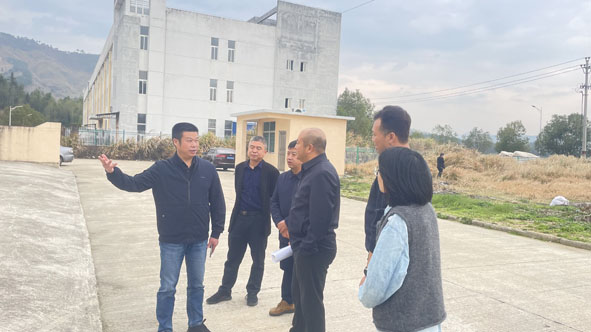 2月21日,浦城县自然资源局局长陈小武(左一)率队到南平市荣华山产业组团现场办公,对企业负责人反映的新年开工建设过程中遇到的困难和问题,逐一“把脉问诊”,“点对点”提供用地要素保障服务,帮助企业纾困解忧。