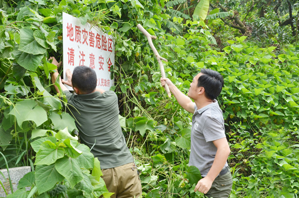 漳州市国土资源局有序有效组织开展地质灾害防范工作,今年以来,全市共排查地质灾害隐患点449处、高陡边坡2744处,开展地质灾害防灾培训12场次2000人,发放地质灾害防灾手册2000多本、防灾宣传单8000多张。 图为长泰县国土资源局干部到地质灾害隐患点检查地质灾害警示牌设置情况。 ■ 本报记者 齐培松