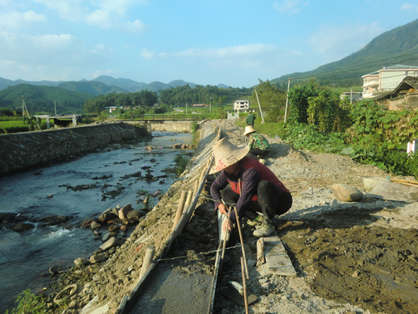 日前,在明溪县瀚仙镇龙湖村土地综合整治项目建设现场,工人正加紧河堤修筑工作。该项目于今年1月动工,重点突出新农村、现代农业和生态景观建设,整治面积995亩,目前已完成总工程量的70%,预计年底可竣工,整治完成后能有效保障生态安全和两岸农田的防洪灌溉。 ■ 本报记者 陈龚清