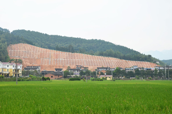 南平市延平区王台镇坋垱村主村后山滑坡地灾点威胁着山脚下72户319名村民的安全,被列为省级地灾工程治理点;在省国土厅、省财政厅大力支持下,滑坡治理工程去年底正式施工,到今年12月可以竣工。图为目前正在施工中的坋垱村主村后山滑坡工程治理点。