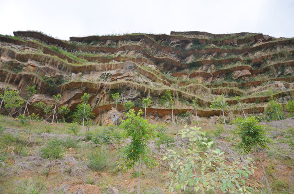 泉州市泉港区涂岭镇路口村乌石山废弃矿区山体复绿工程日前通过市级验收。乌石山矿区复绿工程采用现浇飘板植生槽绿化、厚层基材挂网喷播和液压喷播绿化等技术,重现了山体绿色景观。图为乌石山矿山实施山体复绿工程绿化情况。 ■ 郑志鑫 齐培松