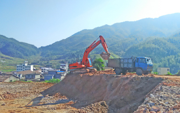 日前,在邵武市桂林乡桂林村地质灾害点治理现场,勾机正在给运输车装土。2010年“6.20”特大洪涝灾害,引发了山体滑坡,致使民房倒塌,威胁居民29户100多人。2011年,该地质灾害点治理获省财政厅、省国土资源厅批准,总投资300万元。目前治理工程已进入扫尾阶段。 ■ 邓木华