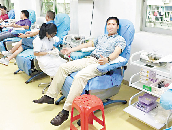 泉州市移民局干部职工参与献血献爱心的活动: