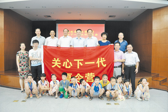 图为董建洲(后排中)、江敦岚(后排左三)及厅关工委有关人员与参加夏令营活动的部分青少年合影。 ■ 本报记者 陈益民