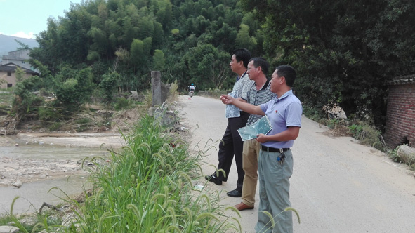 受今年一号台风“尼伯特”影响,尤溪县洋中镇部分村组房屋倒塌、道路受损、农田被毁,损失严重。灾情过后,该镇立即组织开展家园重建,目前各项灾后恢复重建工作正有序进行。 图为8月5日,尤溪县国土资源局与县农业局、洋中镇政府工作人员到该镇受灾最严重的际口村核查、指导灾毁耕地复垦。