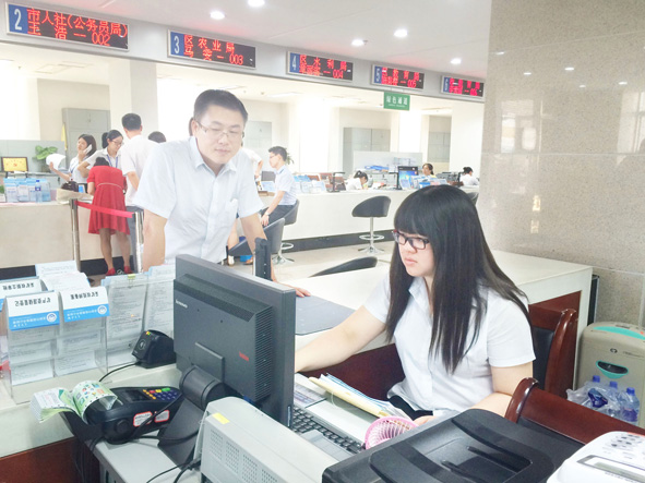今年来,龙岩市新罗区矿管办驻市行政服务中心窗口积极提供方便快捷高效优质的服务,提前介入办理矿山审批服务,并进一步简化审批程序。在矿山审批手续办理完之后,继续与项目业主保持联系,跟踪项目最新情况,并根据实际情况提供咨询等各种服务,做到业务受理“零障碍”、接待群众“零距离”、审批事项“零积压”,努力打造群众满意服务窗口,受到矿山业主的称赞。 图为7月28日,该窗口工作人员在为矿山企业办理年检相关手续。 ■ 曹中富 陈蓥颖