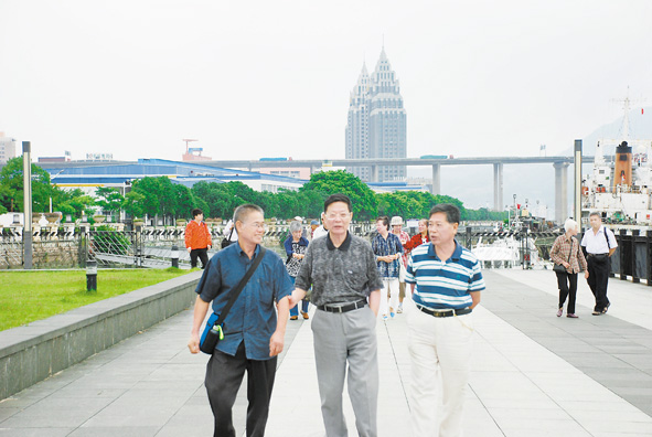 10月9日,省国土资源厅组织了76位离退休老同志前往马尾罗星塔公园、闽江沿岸和海峡奥体中心参观考察,登高望远、愉悦身心,感受福州文明城市建设的新变化。上图为厅离退休老同志在罗星塔公园参观;左图为厅离退休老同志在马尾港参观。 ■ 齐培松 任汉君