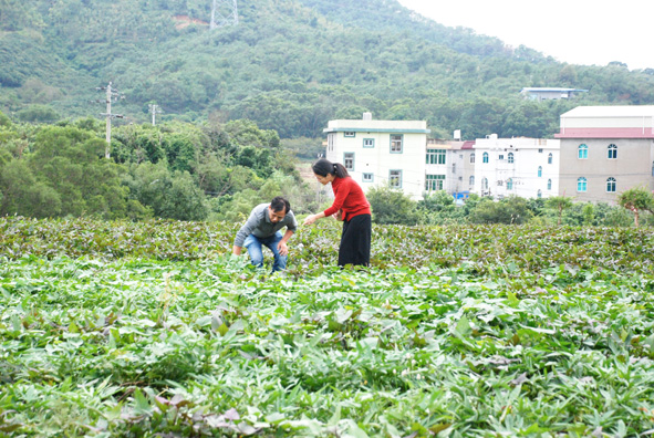 福清市国土资源局高度重视旧村复垦后耕地保护利用和农业设施管护工作,经常派工作人员到项目区实地了解后期管护情况。 图为10月12日,该局规划耕保科干部林碧云和技术人员在宏路街道旧村复垦项目区查看耕地种植和耕地设施管护情况。