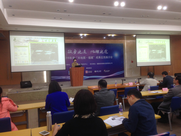 12月2日,2016年度“天地图·福建”成果应用推介会在福州召开。 “天地图·福建”由省测绘地理信息局建设,省基础地理信息中心实施。该平台的数据覆盖全省,涉及影像地图、矢量电子地图、影像电子地图、晕渲电子地图、地理实体、地名地址、专题地图等七大类。目前已为国土、交通、水利、地震等部门的120多个应用系统提供数据和服务。 图为推介会现场。 ■ 黄荣峰 黄 楠