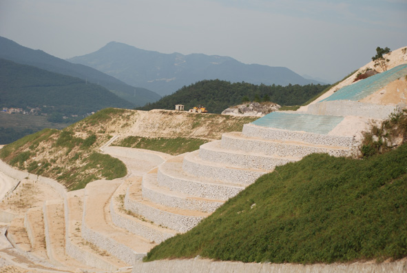 12月8日,记者来到安溪县官桥—龙门饰面用花岗岩矿矿区地质环境治理示范工程采访。在一期治理项目区,远望层层石坎梯田上,翠绿的油茶树,就像条条绿色的彩带环绕山间;在二期治理项目区,看到主体工程已基本完成,竣工的石坎梯田已构筑起道道靓丽的风景线。″官桥—龙门花岗岩矿矿山地质环境治理项目是国家示范工程,计划治理总面积11.04平方公里,分三期实施治理。截至今年12月8日,一、二期工程已完成矿山地质环境治理面积8.07平方公里。图为二期治理项目区内已竣工的石坎梯田一角。 ■ 本报记者 齐培松