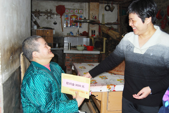 去年12月21日,南平市国土资源局党组书记、局长陈钟珏到延平区塔前镇石城村慰问挂钩帮扶群众,鼓励他们树立信心、走出困境;并与贫困群众代表进行交流,详细了解贫困群众的困难和存在的问题,要求该局下派干部充分发挥自己的能力和水平,为贫困村民多办实事。 图为陈钟珏为结对帮扶困难户送上慰问金。 ■ 特约记者 陈 熙