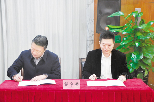 图为董建洲与厅党组成员、省移民开发局局长蔡伟签订党风廉政建设责任书。■ 郑志鑫
