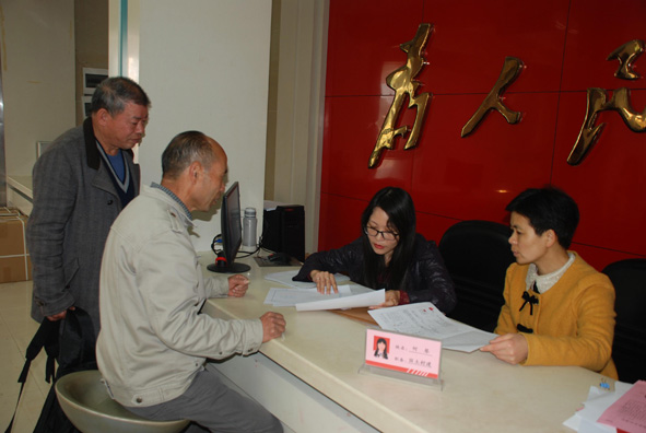 图为2月16日,龙田国土资源所服务窗口工作人员在为龙田镇友谊村村民林万民办理旧房改建登记手续。■ 本报记者 齐培松