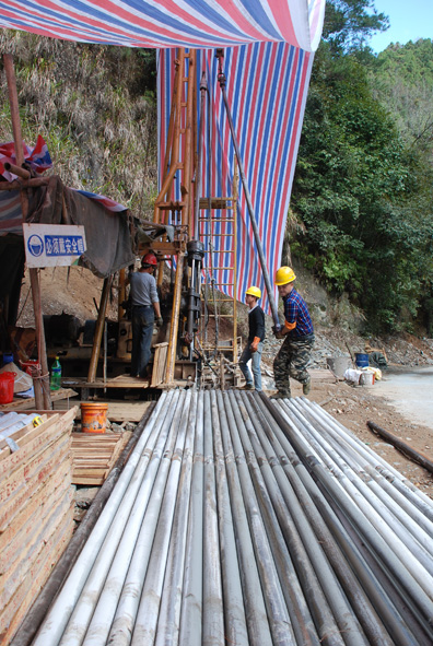 图为日前,钻探工人正在矿区外围实施深孔钻探。 ■ 齐培松 涂晓扬