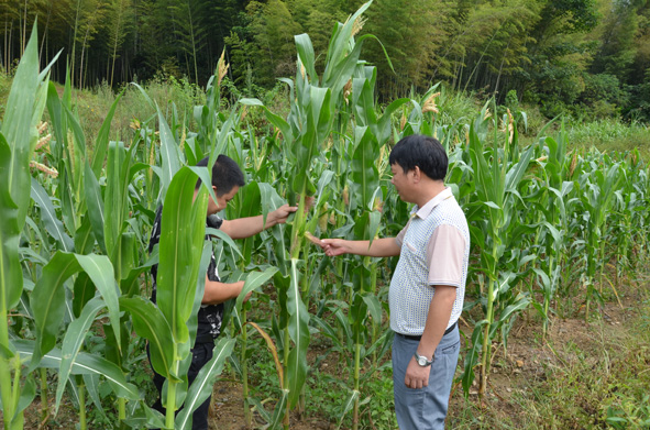 图为武夷山市五夫国土资源所所长饶晓峰(右)日前深入武夷山市田尾村旧村复垦项目区了解新增耕地管护情况。 ■ 特约记者 陈 熙