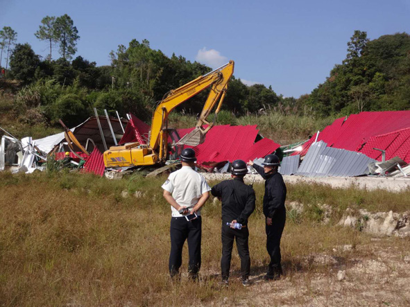 10月25日,福州市国土资源综合行政执法支队通过巡查发现寿山乡溪下村一处钢构违法建筑侵占了永久基本农田。当天,该支队马上联合晋安区寿山乡政府,依法对该违法建筑实施了强制拆除。