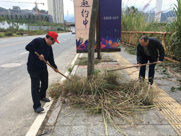 南平市移民局党员积极参加南平市文明办组织开展的“不忘初心 志愿前行”12·5国际志愿者日千名志愿者便民志愿服务活动。图为12月2日,该局党员在水东街道金鸡山社区所辖滨江东路正荣财富中心至建溪大桥路段,清除人行道杂草。■ 孙 靖