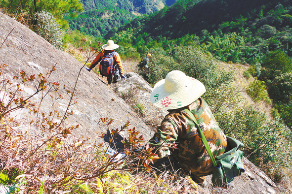 省地质测绘院地勘部日前承接了“台阁山省级地质公园”申报任务。大田县台阁山地质公园以火山地质地貌为主体,生态环境优良,多处景点具备国家级地质遗迹点特性。图为技术员正在实地考察,开展相关可行性评估。■ 陈家红 王 军