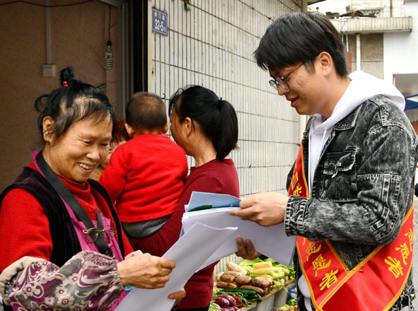 3月5日,龙岩市自然资源局机关党委与新罗区南城街道大同社区党委联合开展学雷锋志愿服务活动,部分青年党(团)员志愿者组成流动宣传志愿服务队,走上街头、走进商铺,向市民宣讲地灾防治、用地报批、不动产登记及平安三率、垃圾分类等知识。