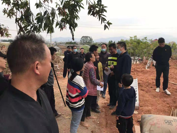 近日,诏安县四都镇“两违”巡查人员发现,上湖村一违建户顶风抢建。随即,该镇领导带领镇、村干部赶赴现场,当场予以制止,要求立即整改,恢复土地原貌。 图为该镇工作人员对违建户进行政策宣传引导。
