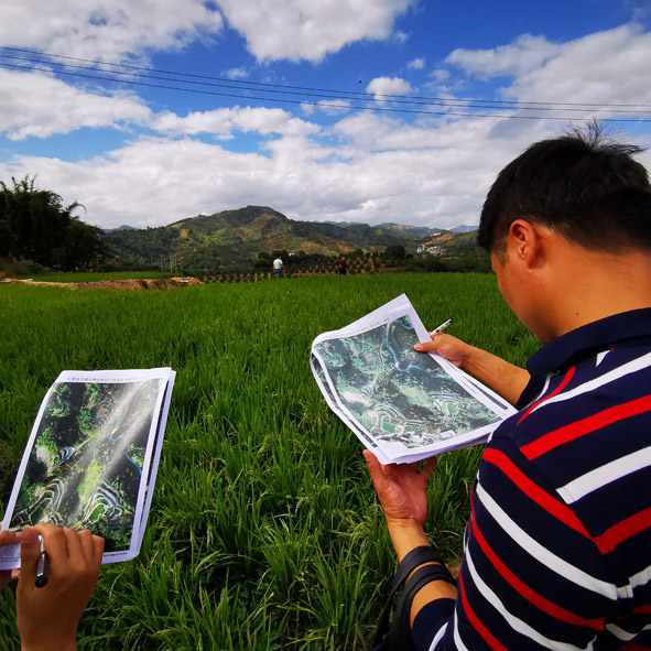 去年以来,漳州市自然资源局通过政府购买服务方式,利用无人机对补充耕地地块进行航拍,然后进行立项范围、竣工范围、生态红线、公益林、坡度等多条线套合,从技术上检查是否符合各项要求,进行图上把关,最后工作人员再到实地核实,大大提高工作效率和工作质量。 图为近日,该局工作人员利用无人机航拍成果在实地进行核对。