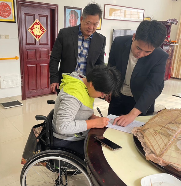 3月17日,漳浦县不动产登记中心窗口工作人员准备好完整材料,到朝阳新村蔡女士家中为其办理不动产转移登记手续。蔡女士下肢瘫痪,行动不便。近期,她急于把名下房产过户给儿子。漳浦县不动产登记中心窗口工作人员了解到这一情况后,为其提供上门服务。